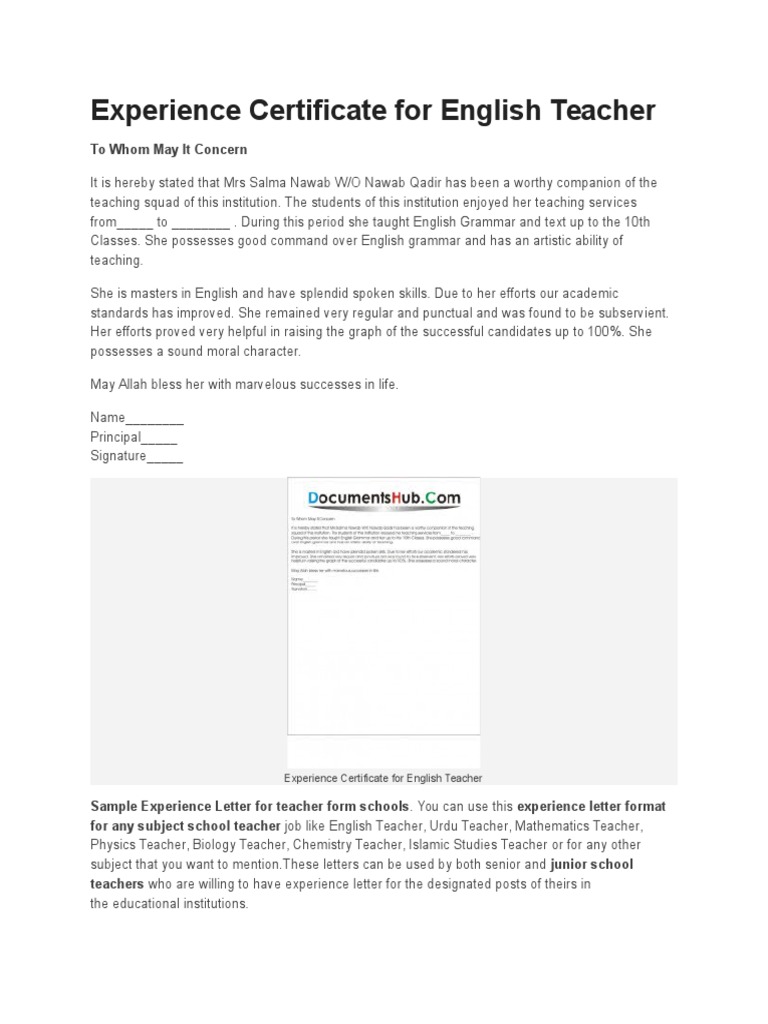 Sample Application Letter For Teacher With Experience. Sample related to school, college, academy teaching. [below briefly describe on sample experience letter for teacher from school, college, academy etc. Conclude your simple application letter in not more than 2 sentences, and sign off appropriately with your name and contact information.